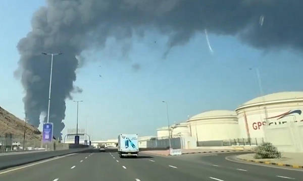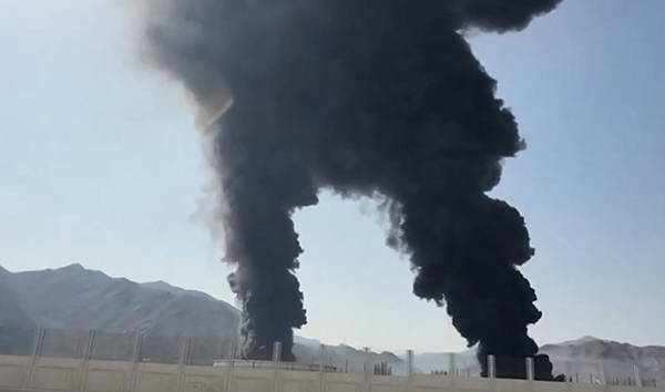 16日,富查(cha)伊拉港遇袭后起火冒烟视频截图