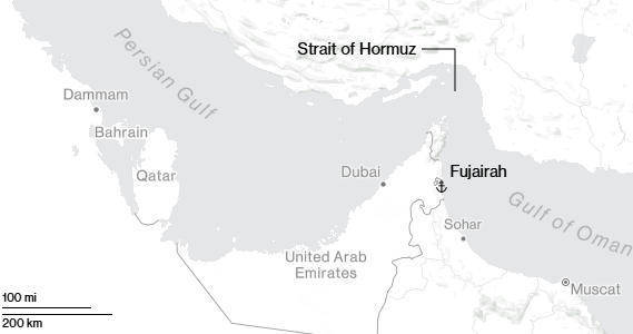 阿联酋富查(cha)伊拉港位于霍尔(er)木(mu)兹海峡(xia)之外彭博社制图