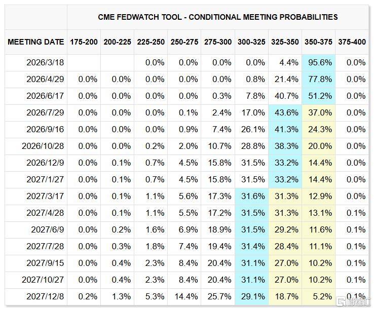 交易员估计联邦(bang)公开市场委员会(FOMC)将在3月17日和18日举行的为期两天的会议上(shang)继承保持利率在3.5%至3.75%的区间没有变概率为95.6%。