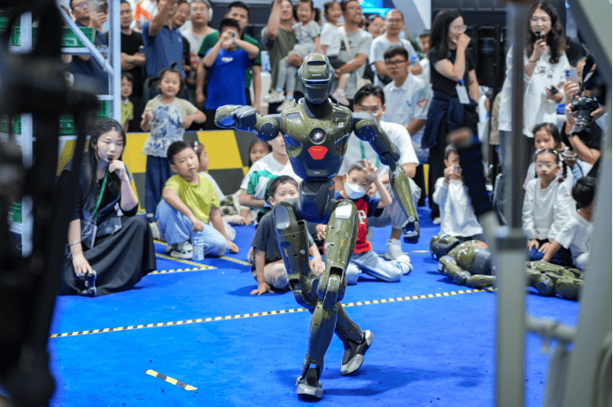 世界制作(zuo)业大会上,安徽造(zao)人(ren)形机器人(ren)正在跳舞。(图源:中安在线)